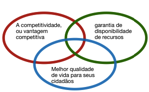 Ao associarmos o conceito de sustentabilidade aos projetos e iniciativas de cidades inteligentes podemos ligá-las, ainda a três objetivos básicos: Competitividade, qualidade de vida e garantia de disponibilidade de recursos (ver figura 4)